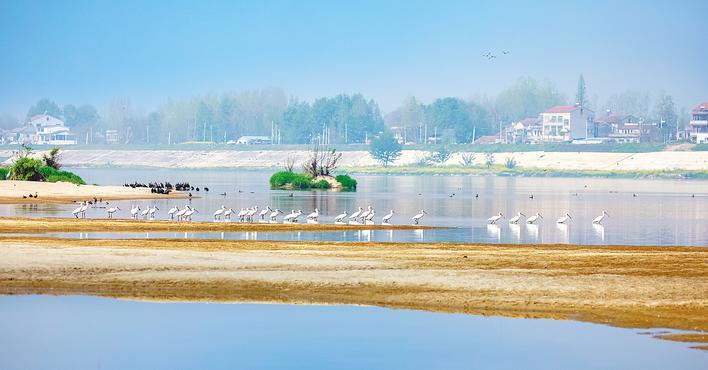 此时正是候鸟的迁徙季节,成群的候鸟栖息在汉江湿地。 (湖北日报通讯员 王晓红 摄)